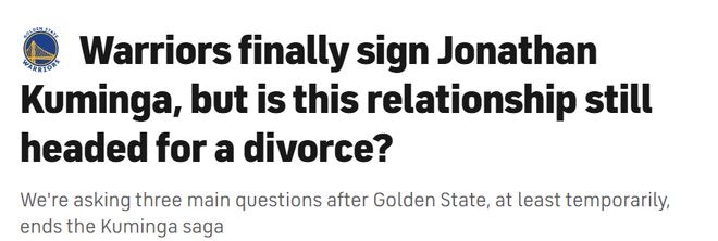 明智的判断是“会”。除了老板拉科布,勇士队似乎无人真正致力于留住库明加,而库明加也用尽办法想要离开勇士。这是一场“别无选择的联姻”——只要出现对勇士队有利的分手时机,他们很可能会立即促成交易。